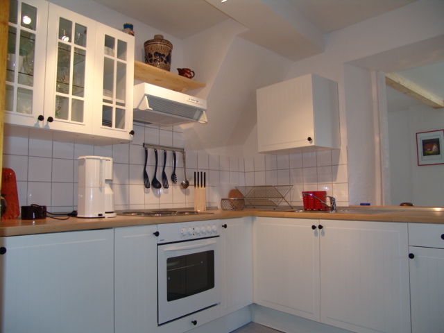 Zwei Schlafzimmer mit Doppelbetten, eine komplett eingerichtete Küche mit Essbereich,